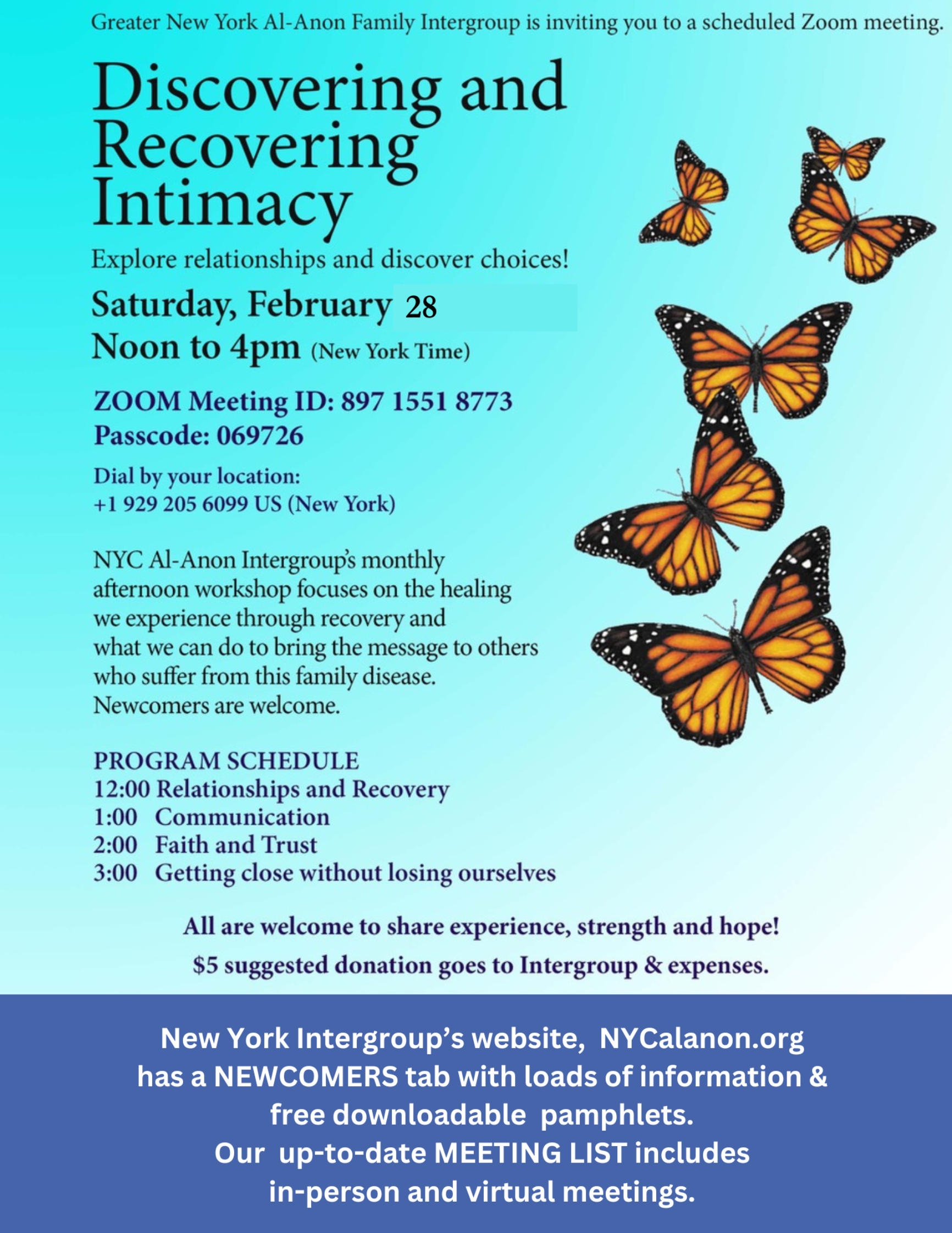 Opening to Compassion NYC Al-Anon Intergroup's Monthly Afternoon Workshop Saturday, January 31, 2026 Virtual Workshop Time: Noon to 4:00 PM (New York